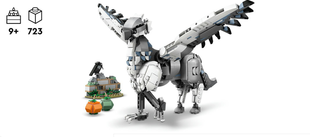 Uma figura do Bicuço, o Hipogrifo de LEGO® Harry Potter™, item colecionável e construído com peças para exposição divertida.