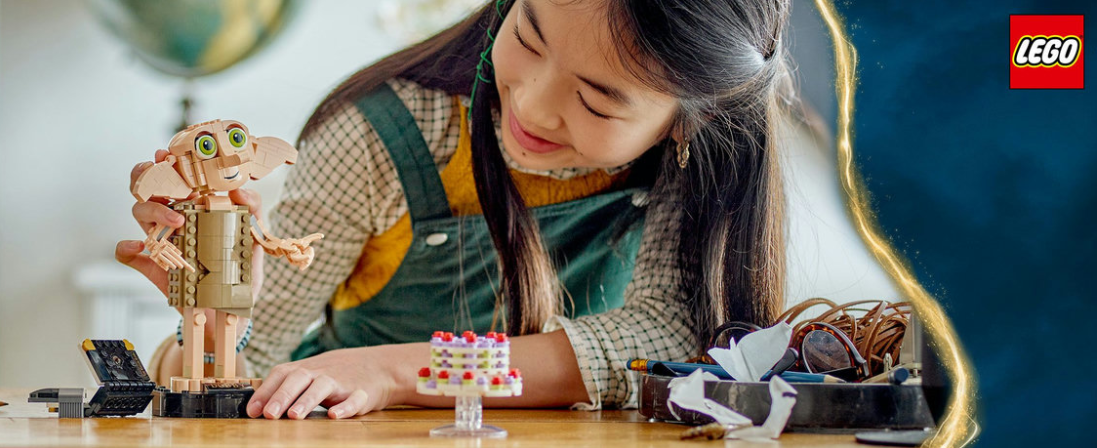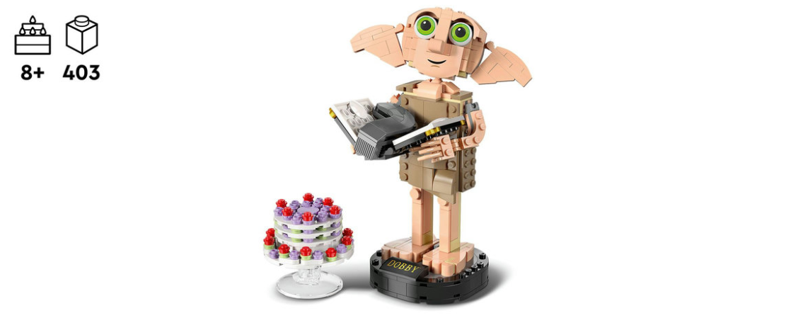 As crianças reviverão momentos clássicos dos filmes ao recriar as características mais marcantes de Dobby™ em estilo LEGO®.