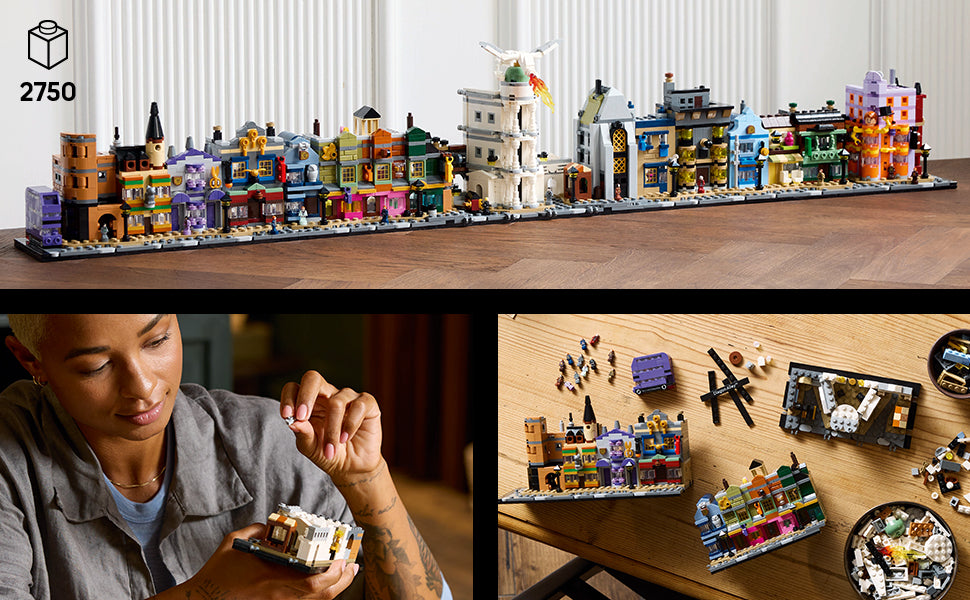 Capture a atmosfera mágica do Beco Diagonal e suas lojas mágicas com este conjunto LEGO Harry Potter para adultos.
