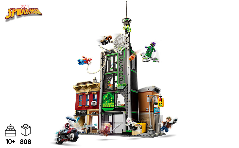 Esta cena urbana com vários modelos apresenta ação de super-heróis, personagens icônicos e locais famosos.