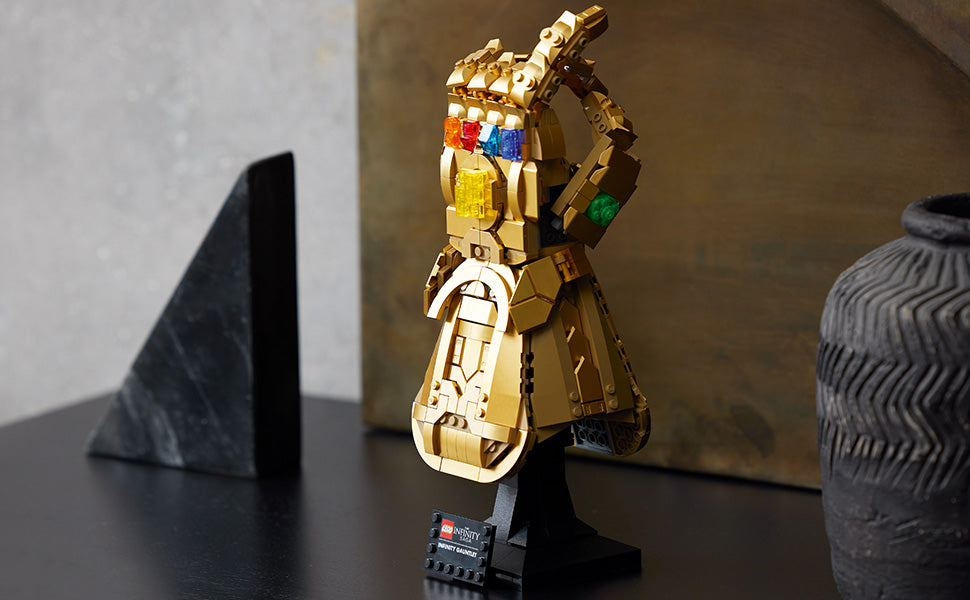 Fãs adultos de Vingadores da Marvel irão gostar desta impressionante Manopla do Infinito LEGO Marvel para montar e exibir.