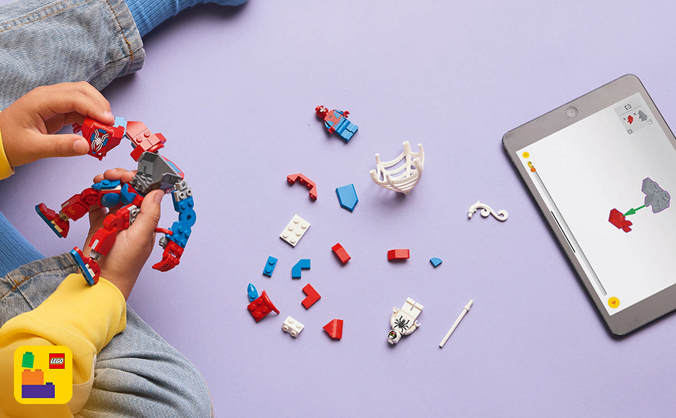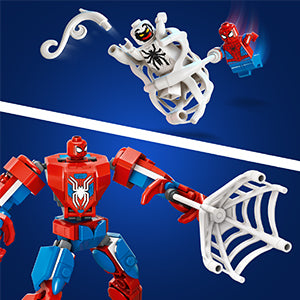As crianças criam aventuras de lançar teias em larga escala com este conjunto de robô e minifiguras do Homem-Aranha.