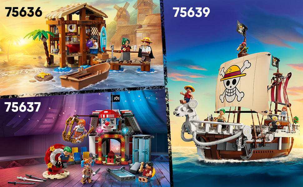 As crianças vivem mais aventuras de pirata com outros conjuntos para construir e brincar da linha LEGO ONE PIECE (vendidos separadamente).