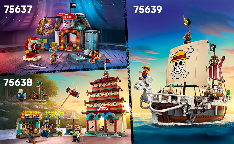 As crianças vivem mais aventuras de pirata com outros conjuntos para construir e brincar da linha LEGO ONE PIECE (vendidos separadamente).