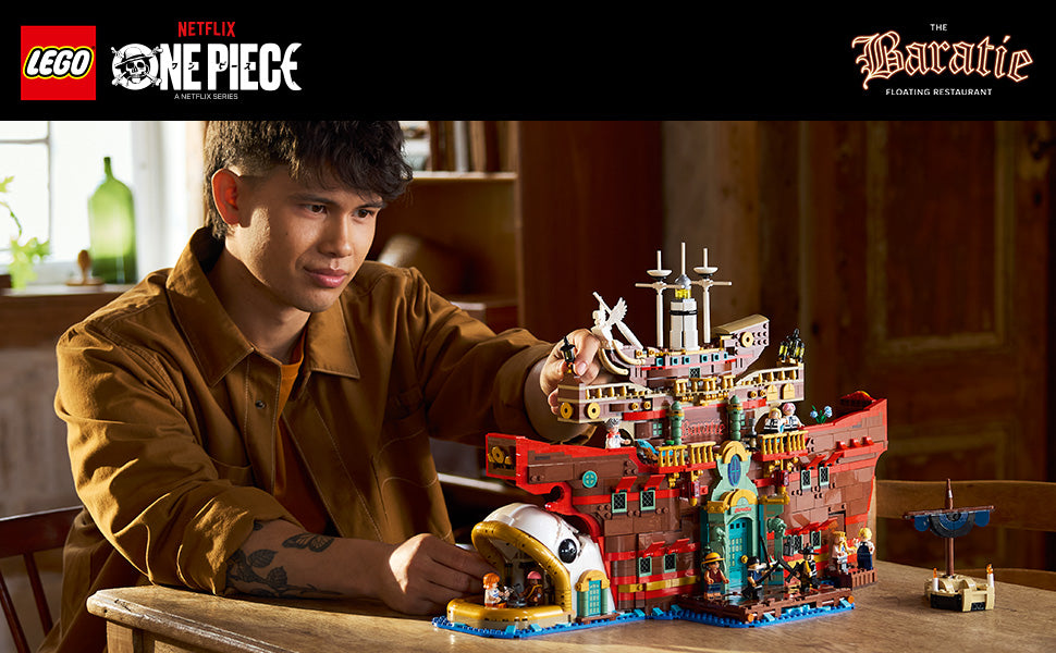 O modelo do Restaurante Baratie tem 3.402 peças e vem cheio de detalhes autênticos e personagens famosos da popular série da Netflix.