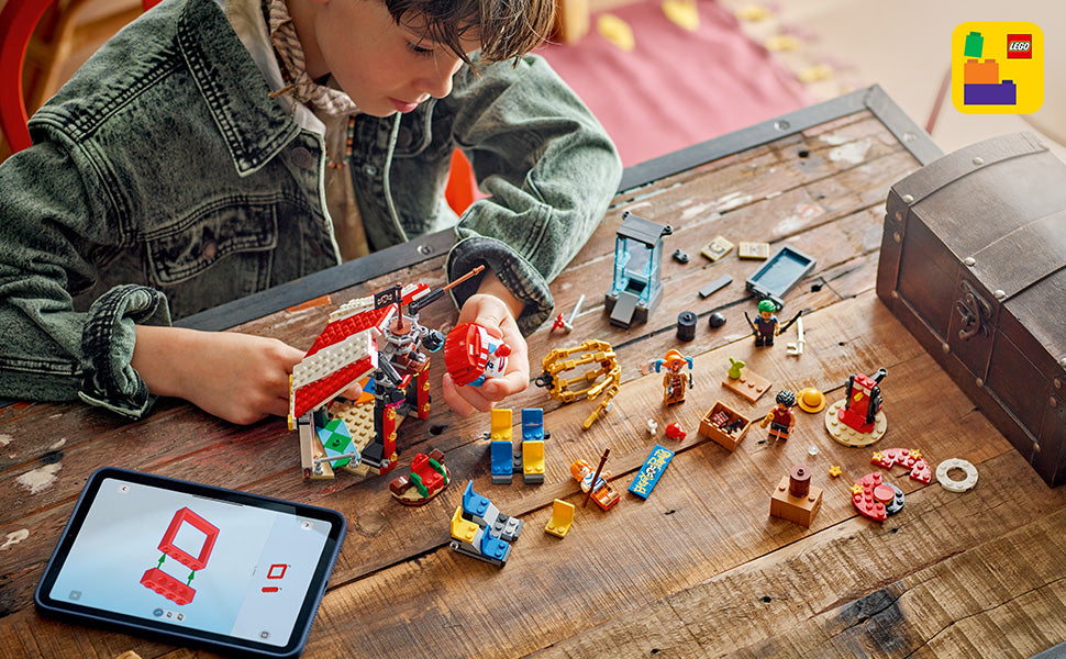 Os construtores podem ampliar e girar conjuntos em 3D e monitorar o progresso no divertido e intuitivo app LEGO Builder.