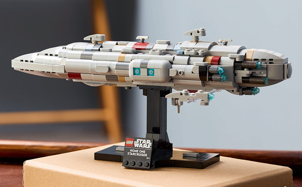 Construa o primeiro modelo de peças LEGO do Home One Starcruiser, como visto em Star Wars: O Retorno de Jedi.
