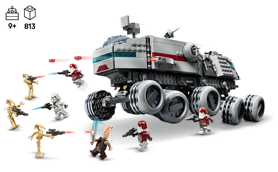Entre na batalha com este modelo detalhado construído com peças LEGO de um Juggernaut da República de Star Wars: A Guerra dos Clones.
